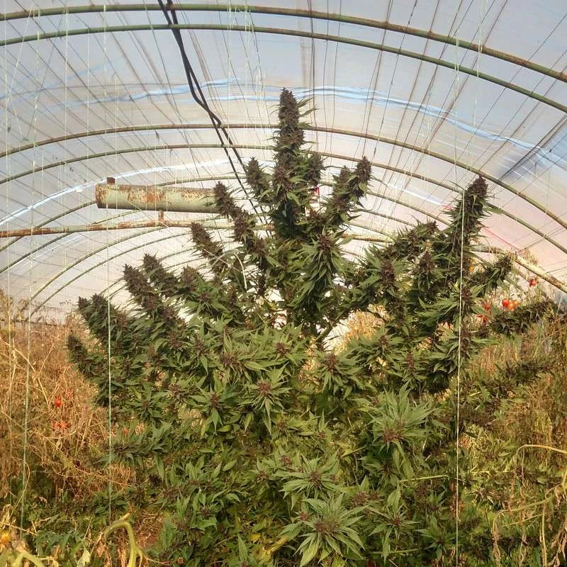 Das Besondere an dieser Sorte ist die „Entenfuß“-Blattform. Ohne die charakteristischen gezackten Cannabis-Finger geht diese Pflanze im Garten oder im Gebüsch einfach als Zierpflanze durch. Erst in der späten Blütephase geben die wunderschönen violetten Knospen ihre wahre Identität preis. Sie ist extrem zäh, kommt hervorragend mit schlechtem Wetter in Nordeuropa zurecht und wächst kräftig wie ein Weihnachtsbaum.