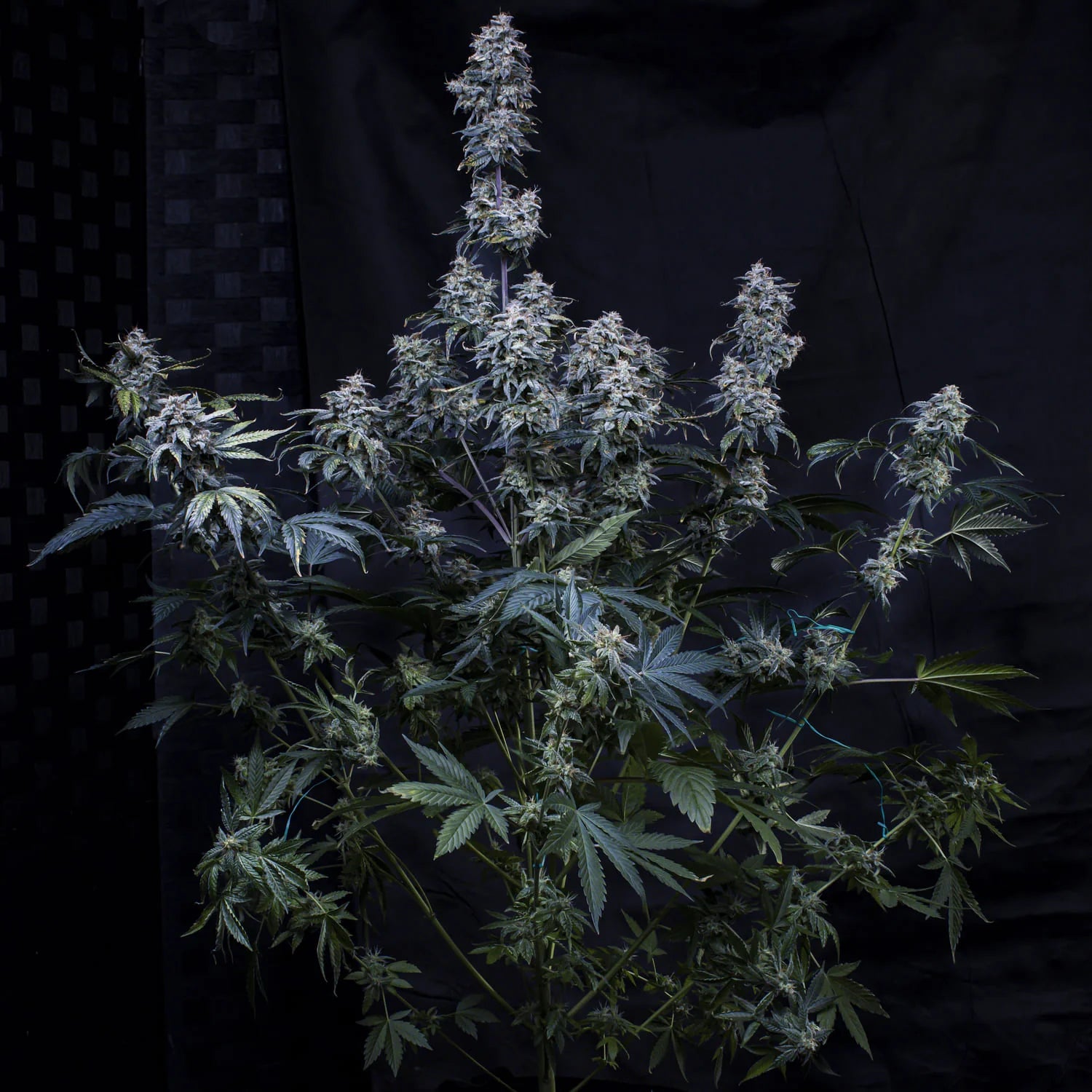 Optik & Harz: Pinot Noir ist eine wahre "Beauty Queen". Die Pflanze ist stark squat (gedrungen) mit riesigen Fächerblättern in der Veg-Phase. Die Blütenstruktur ist ein perfekter Mittelweg zwischen Double Grape und Crème de la Chem – dicht, kompakt und mit "mehr Glasur als ein anständiger Kuchenladen" überzogen. Die Trichomproduktion ist rasend und bedeckt Blätter und Stängel.